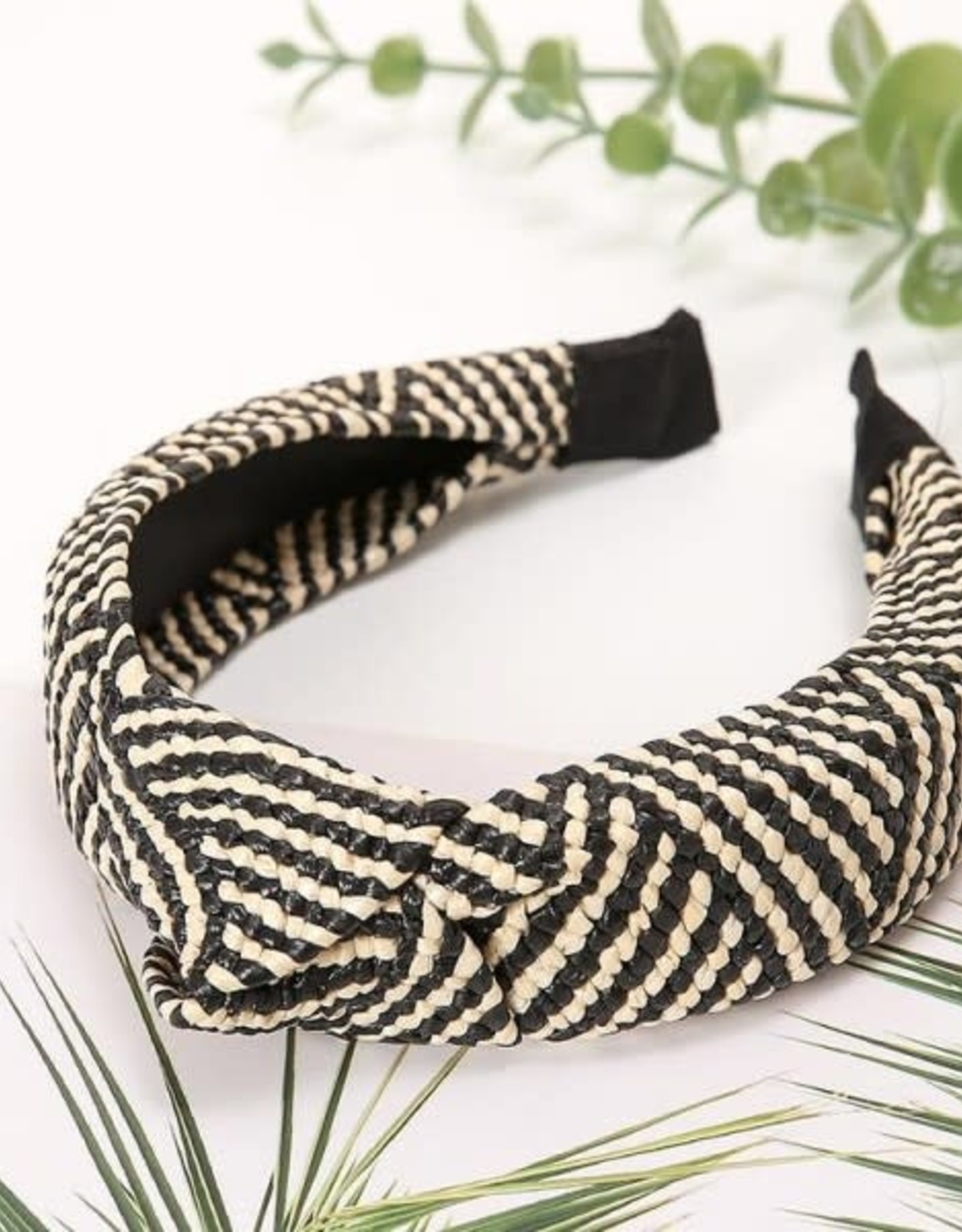 714304 - Woven Straw Headband With Top Knot Detail - Cream/Black